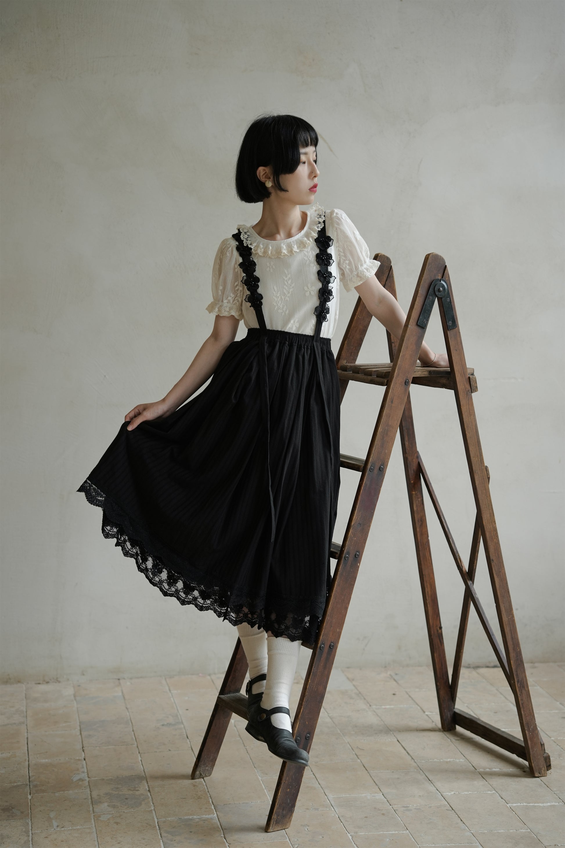 サスペンダースカート•7819202035B/ブラウス•8720250403